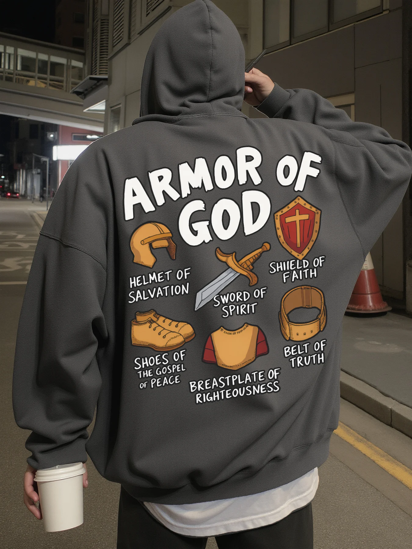Hoodie for Men Streetwear, "Armor of God" Print, Christian Graphic Hoodies for Men, Suitable for Wearing in Spring, Autumn, and Winter