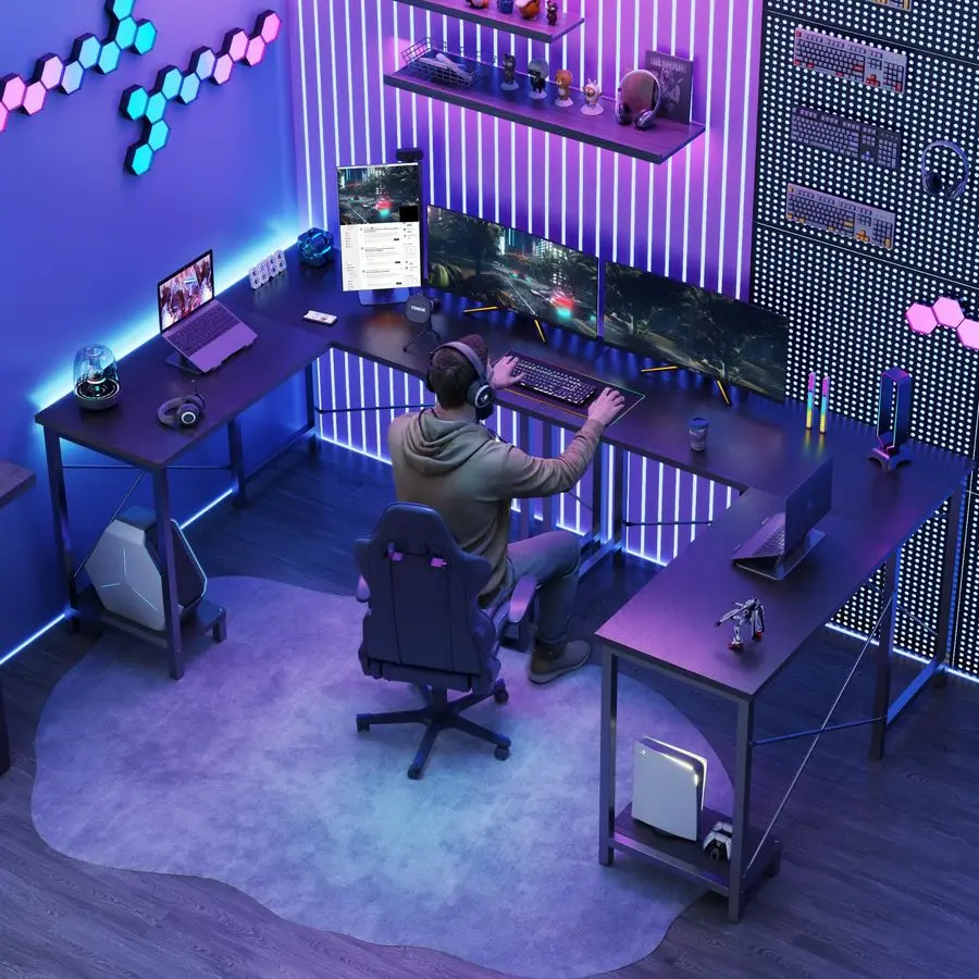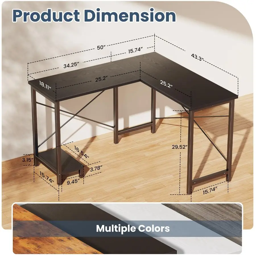L Shaped Desk, Computer Gaming Desks Corner Office Table with CPU Shelf for Home Study Writing Work Station 50 Inch, Black