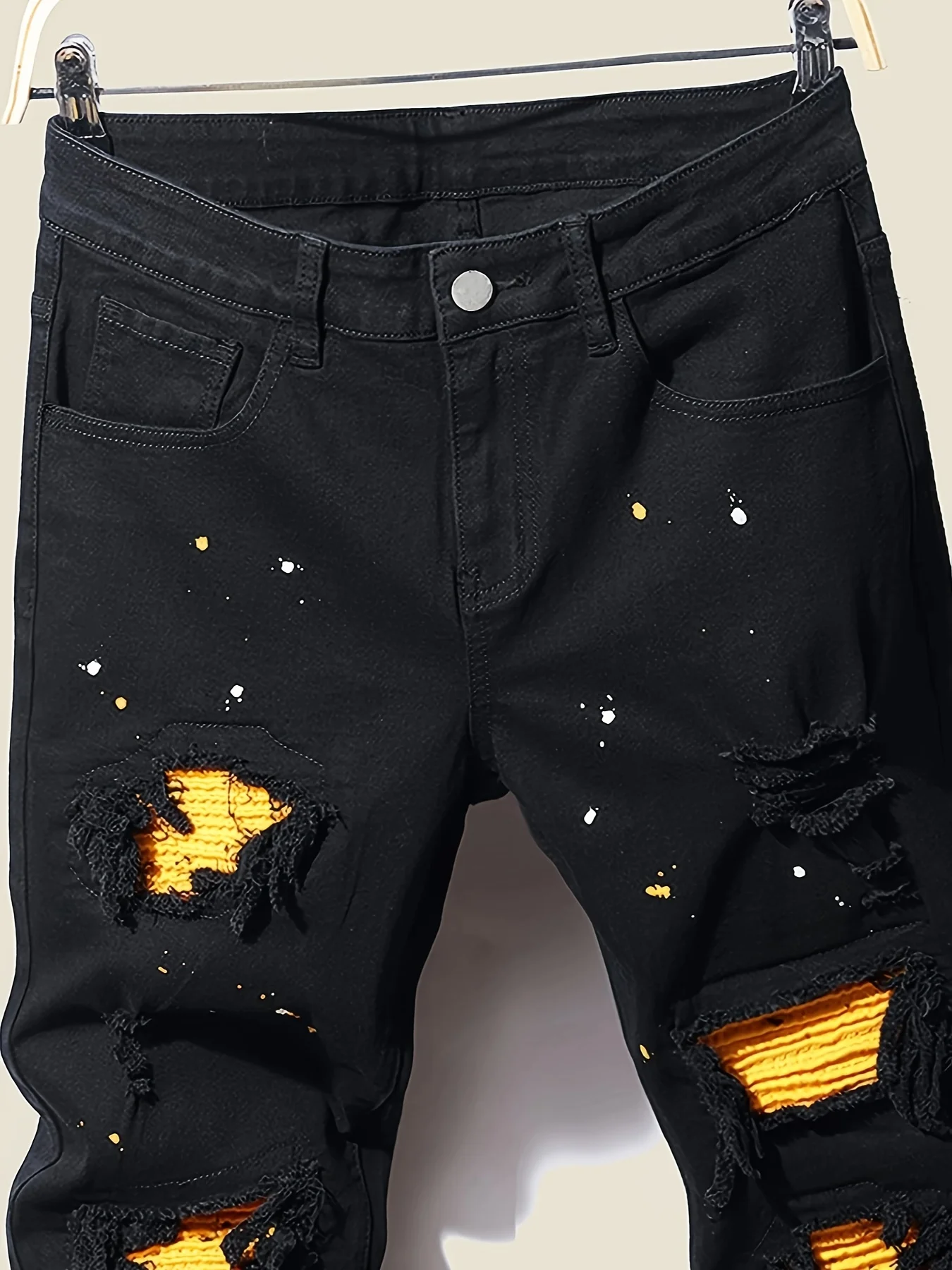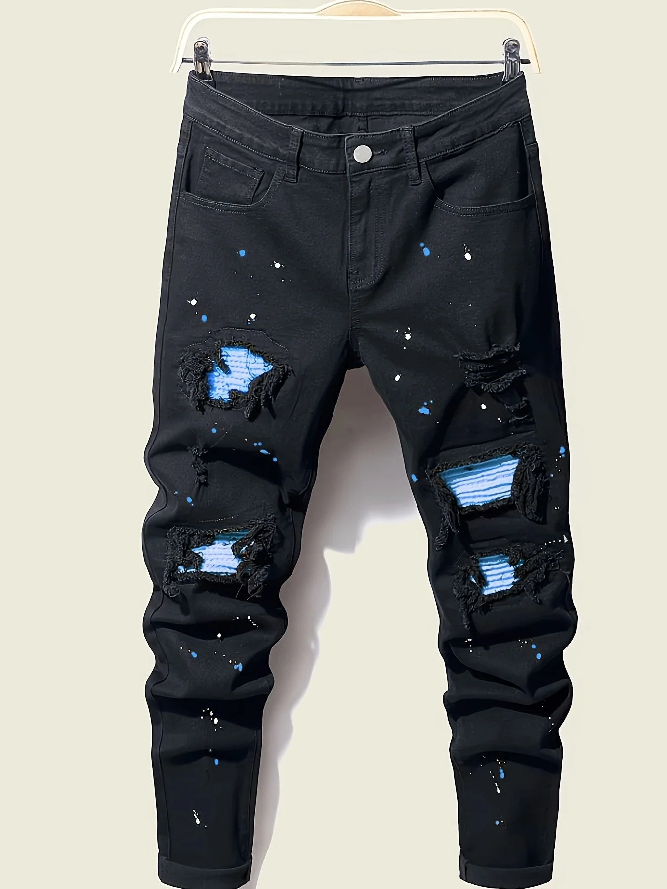 Men's splatter-paint patchwork jeans, ripped jeans, slim-fit stretch jeans, all-season jeans, suitable as a gift for boyfriends
